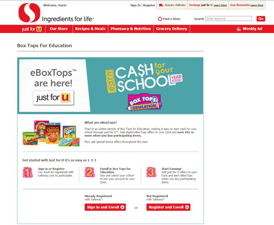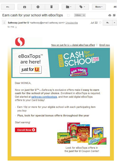 Email announcement and digital support of eBoxTops, an Safeway exclusive online version of Box Tops for Education