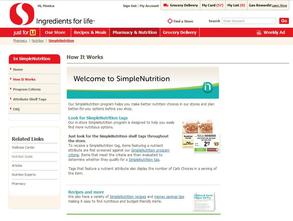 Revamp of the online communication around Safeway's SimpleNutrition program