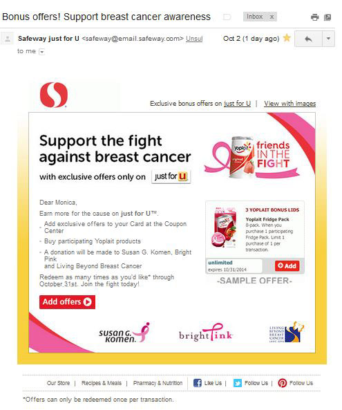 Email support of Yoplait's Friends in the Fight lid fundraising program
