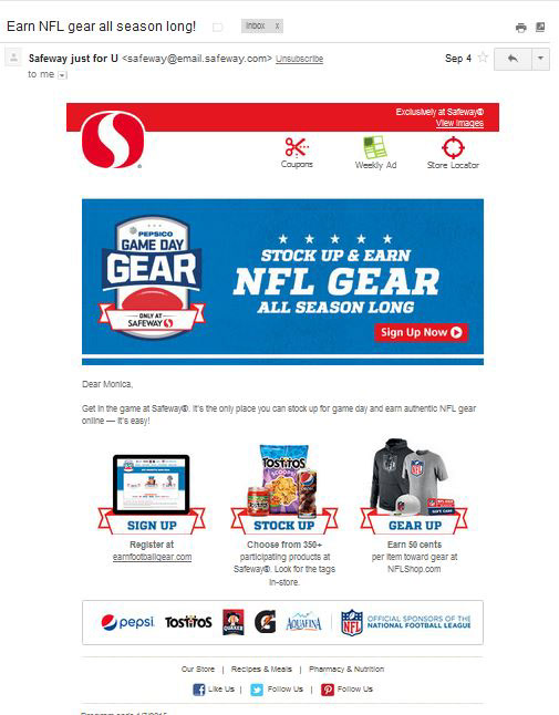 Email support of a Safeway exclusive in-store program with Pepsico and the NFL
