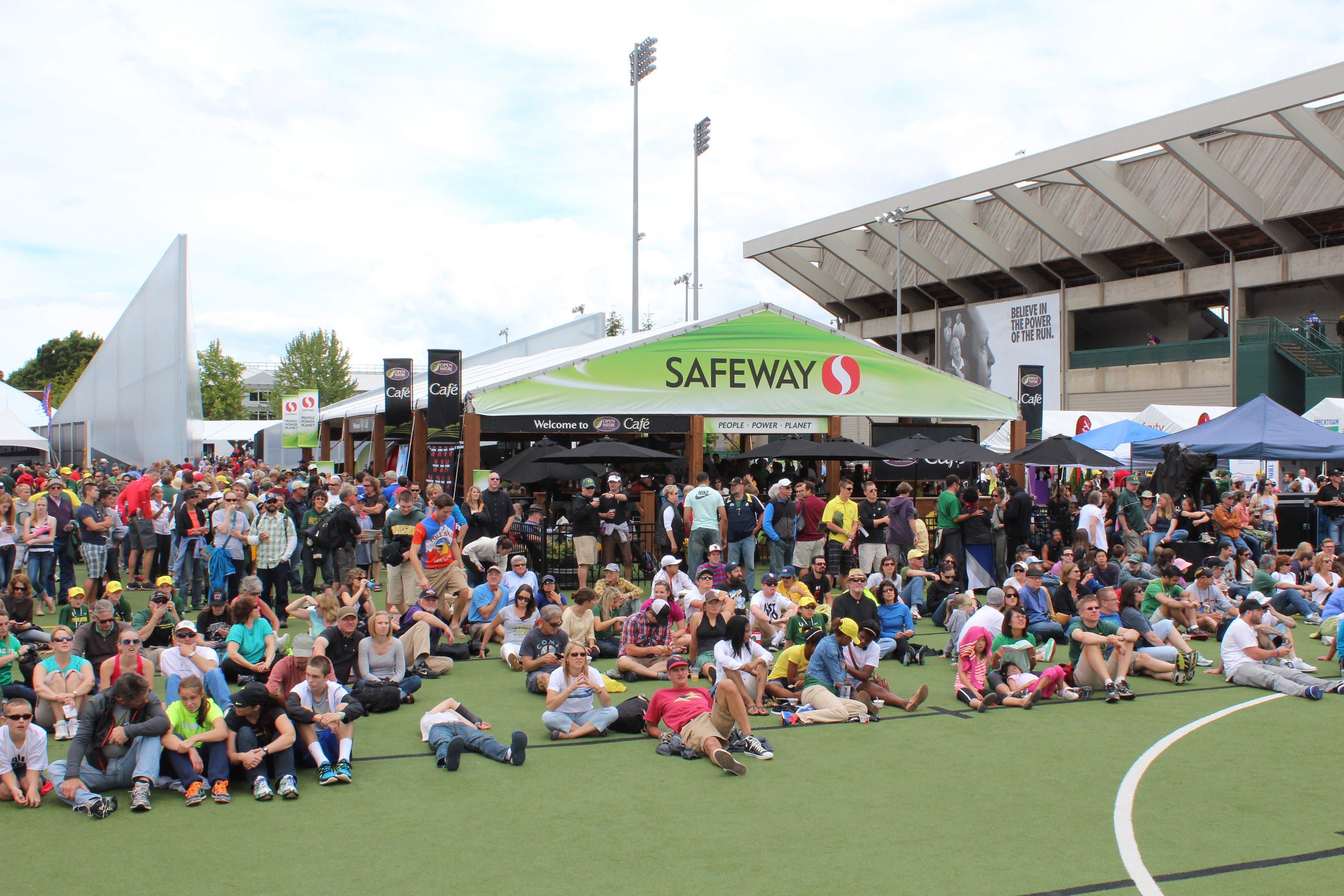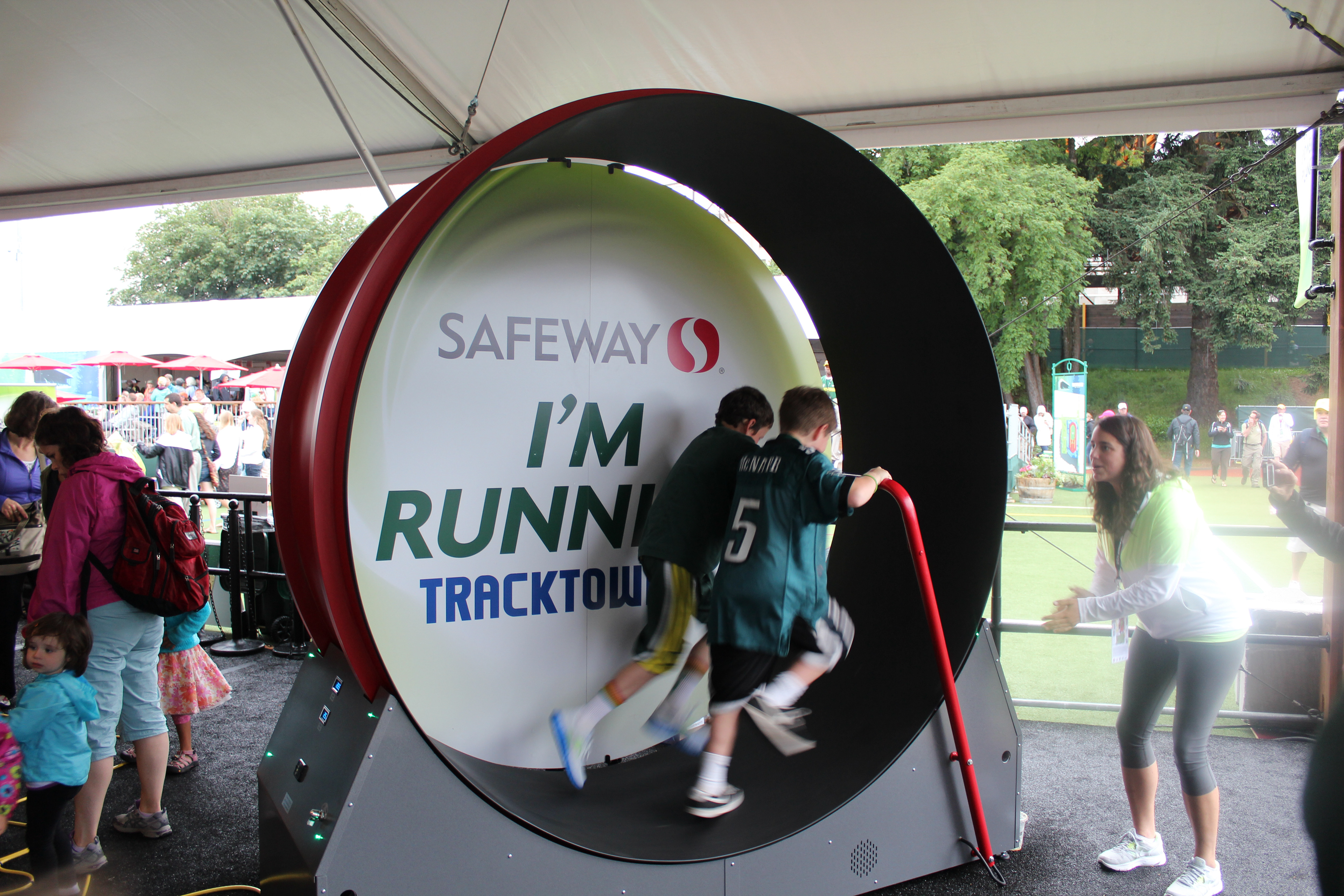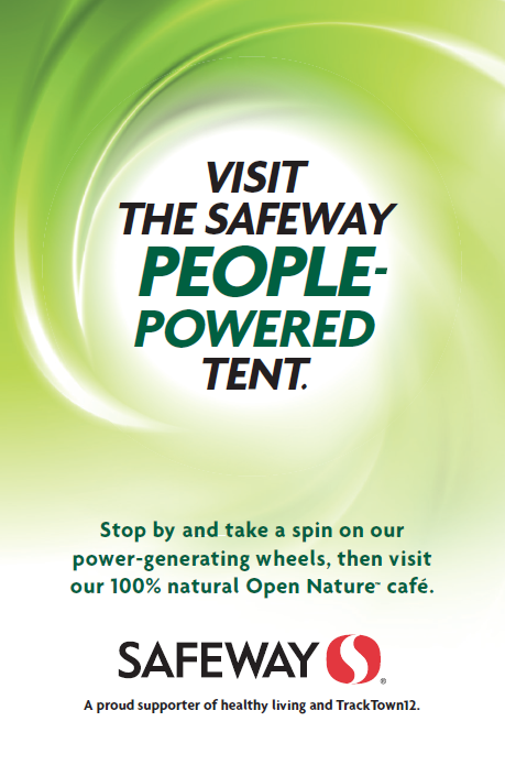 TrackTown12 sponsorship in Eugene, OR - including a full Safeway sponsored tent featuring a natural food cafe and power generating wheels to coincide with the eco-friendly theme.